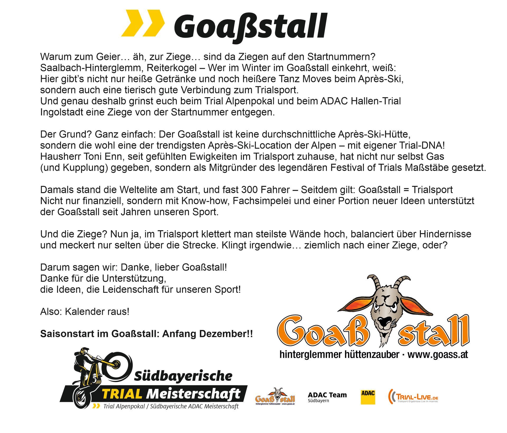 Zusammen mit unserem Partner www.Trial-Live.de bieten wir Euch auch für die kommende Saison